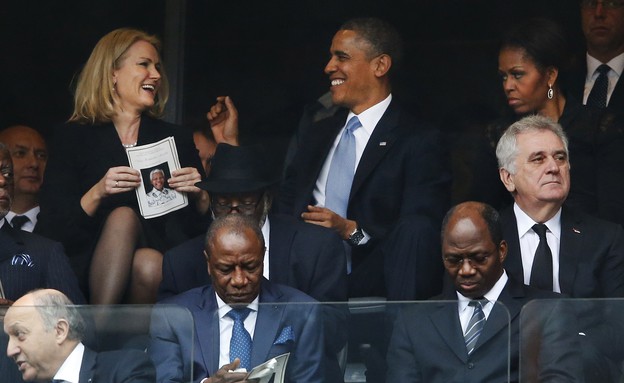 הפרצוף שמישל עושה בזמן שבן זוגה מצחקק עם ראש ממשלת דנמרק בהלוויית מנדלה, מעורר חודשים של שמועות על אי נאמנות מצידו של אובמה.