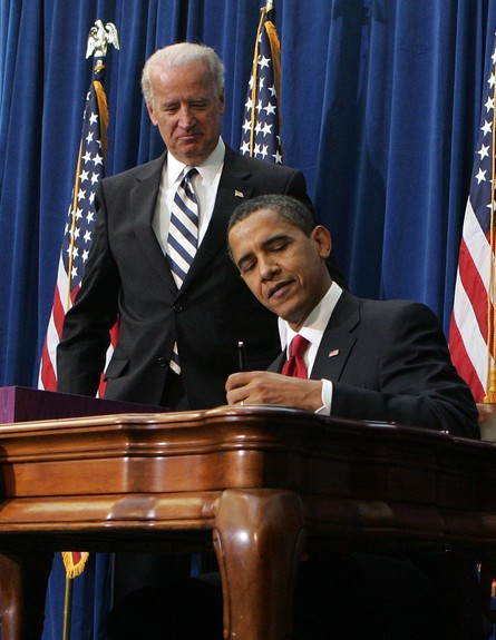 כשג'ו ביידן לצידו, אובמה חותם על התכנית הכלכלית שלו בניסיון לעורר את הכלכלה האמריקאית המדשדשת.