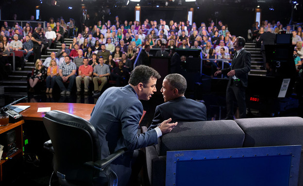 את החיבה שלו לטוויטר הפגין אובמה אצל ג'ימי קימל, שם הוא הקריא טוויטים מרושעים שנכתבו עליו. בין הנושאים על הפרק: האזניים שלו, הג'ינס המביך והשיער המאפיר.