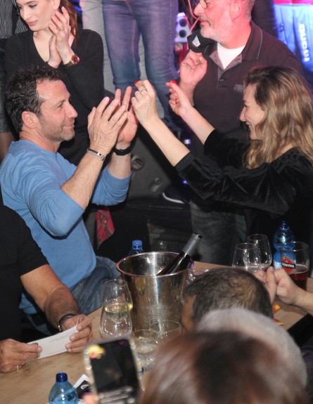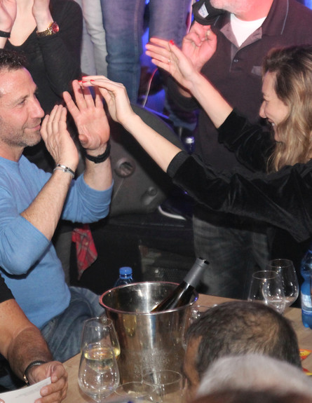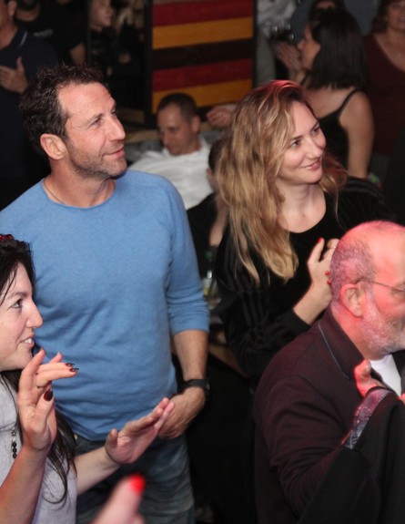 אה-לן למיכל אנסקי ובן הזוג החדש, שהגיעו יחד לערב של עינת שרוף במועדון הגנקי.