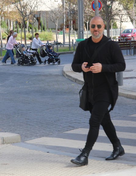 הכדורגלן בעבר ופרשן הספורט בהווה נהנה ממזג האוויר הנוח כשהוא חמוש באאוטפיט שחור ומשקפי שמש