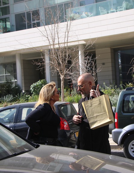 הוא החליף כמה מילים עם מישהי שהעבירה לו שקית חומה אטומה, ולצערנו לא הספקנו להציץ פנימה לפני שהמשיך לביתו הסמוך