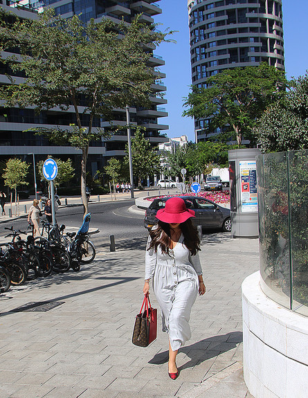 הכוכבת הפתיעה אותנו לגמרי בלוק שמרני משהו שכלל שמלת כפתורים לבנה וטרנדית, לצד נגיעת צבע אדומה באקססוריז - כי בכל זאת, אביבית לא כאן בשביל להיות גנרית