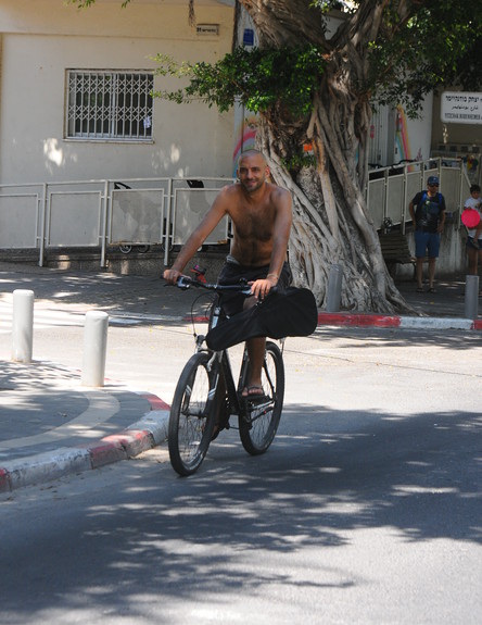 לא כל יום אנחנו נתקלים בצילומי פפראצי של עידן רייכל, אבל לא נשקר שזה נחמד יותר כשבתמונות שמגיעות הוא נראה טופלס, בעודו רוכב על האופניים