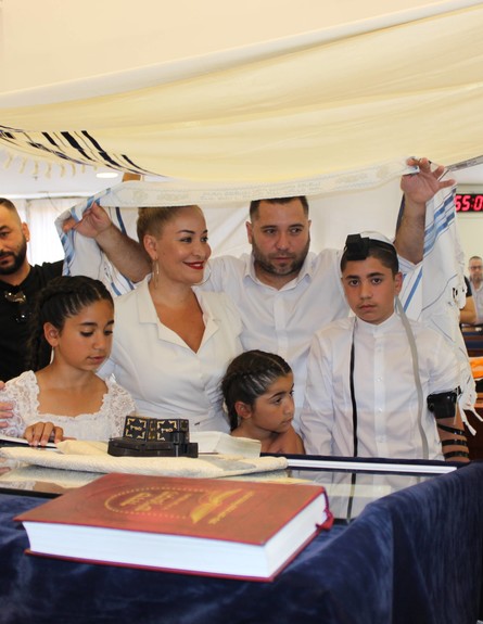 כיאה למסורת היהודית, המשפחה כולה הגיעה לבית הכנסת כדי לצפות בו עולה לתורה