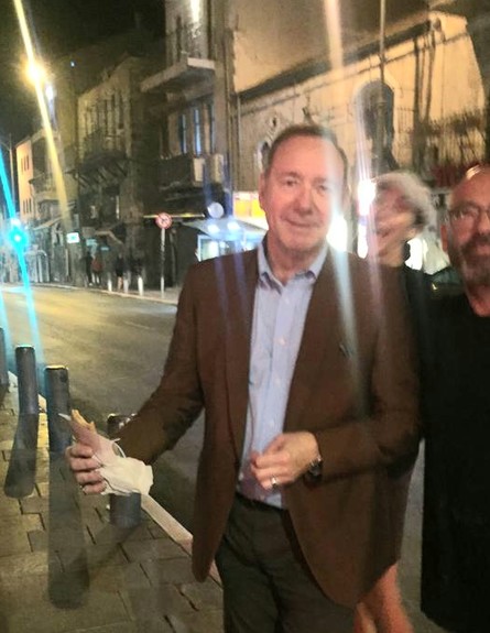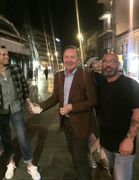 קווין ספייסי שוהה בישראל כבר מספר ימים ואחרי שנצפה בבילויים בתל אביב במסעדת ה"קוקו במבינו" של טום אביב וגם בבר הגאה "שפגאט", ספייסי צולם אוכל פלאפל בירושלים