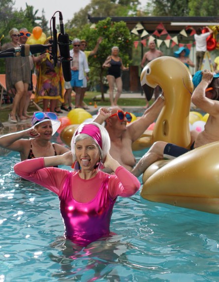 גימלאית בת 90 שמבלה עם כל החברים מבית האבות במסיבת בריכה לוהטת