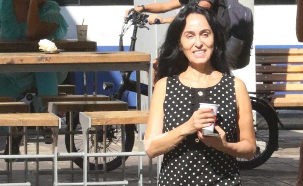 ריטה לבושה בשמלת נקודות מתוקה במיוחד בצבעי שחור ולבן