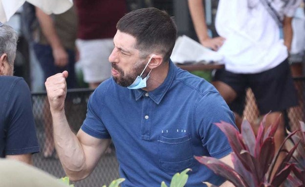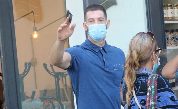 צלם הפפראצי שלנו תפס את חיים כשהוא מצטייד במזון במרכז תל אביב, תוך כדי שהוא שומר על מרחק