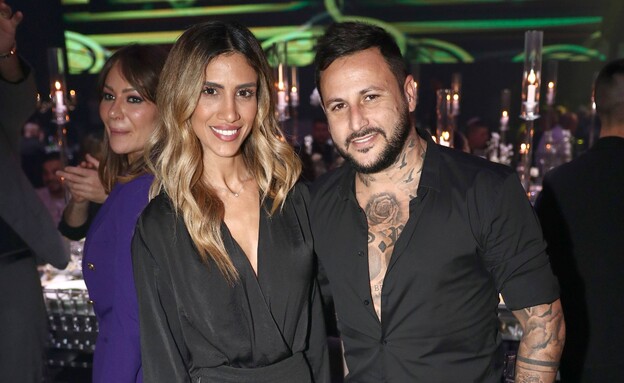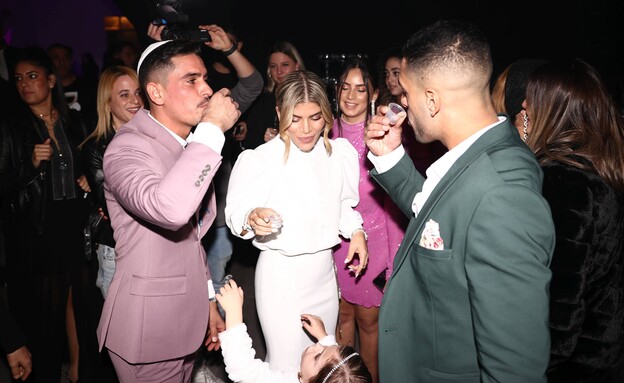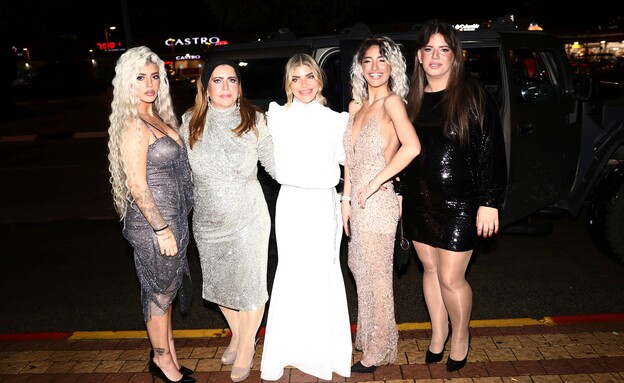 לא פספסו את החגיגה של החברה מ"הישרדות": אוהד ופאני בוזגלו בלבוש תואם. מאחורה: אלה אייבינדר בסגול