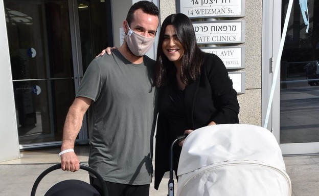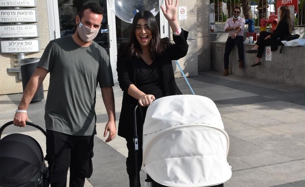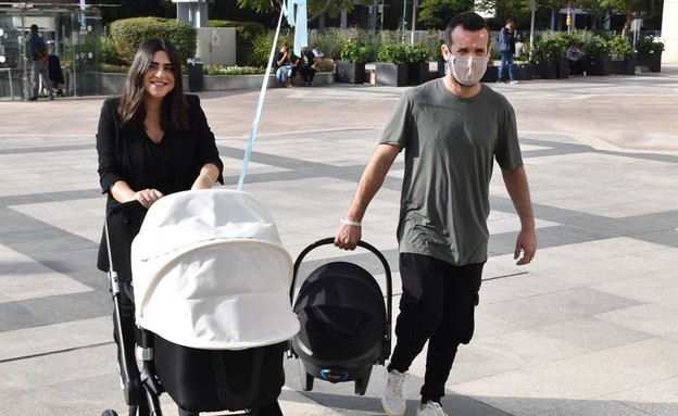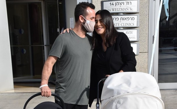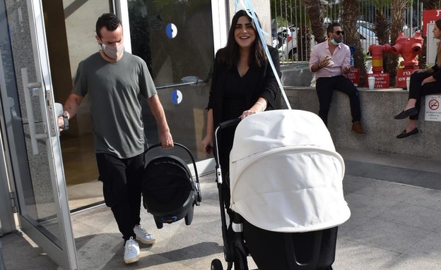רגע אחרי שנופר מור ילדה בן, היא יצאה מבית החולים כשהיא מלווה בבן זוגה, רון ברבי