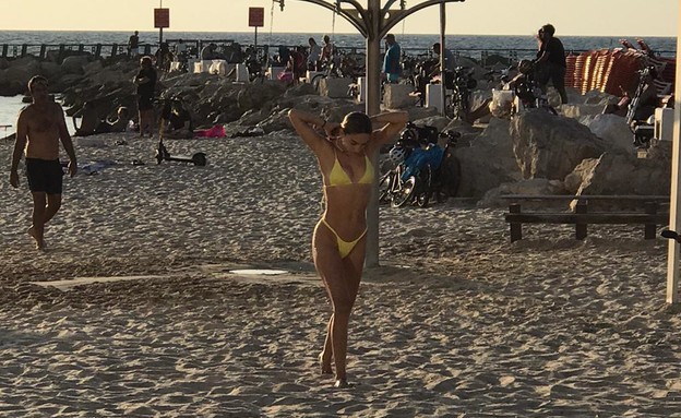 לפני שאתם זועמים שהיא מפרה את הנחיות הסגר, נספר כי מי שהיה במקום הבחין באלה כשהיא עושה ספורט יחידני (סאפ), ונצמדה להנחיות כשהיא לחוף למטרת אימון