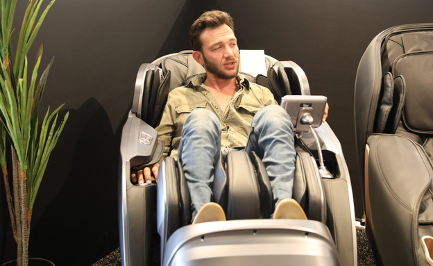 ניכר שהם מרגישים בנוח בסניף. עוז זהבי על כורסאת המסאז'ים