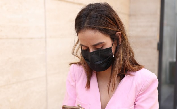 רגע לפני החג, בחליפה ורודה מהממת ומסכה שחורה, פולק נצפתה בצפון תל אביב כשהיא יוצאת מסידורים