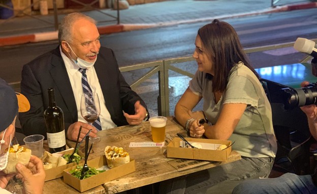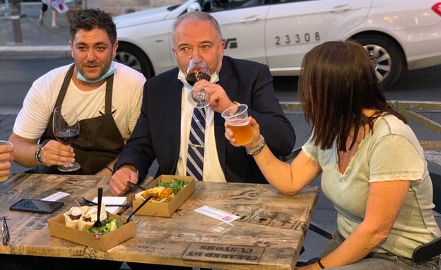 ליברמן, פלוס שלושה מאבטחים צמודים, נהנה מארוחת ערב מפנקת כחלק מהפרויקט של עיריית ירושלים "עיר המדרחובים של ישראל" שמצליח להביא לא מעט מבקרים לעיר הבירה האהובה שלנו