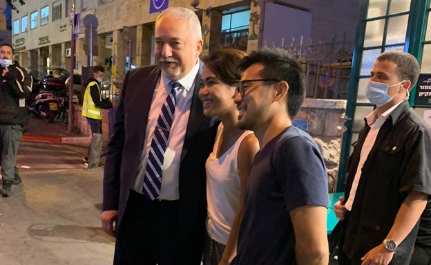 אחר כך הוא הרים כוסית של יין אדום והתפנה לקצת בקשות סלפי מהעוברים והשבים. איווט ליברמן