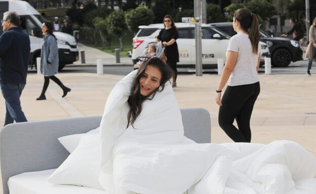 את מירי מסיקה אנחנו רגילים לראות כשהיא מופיעה על במות ורחבות גדולות, אבל למה שקרה אתמול (שלישי), העוברים והשבים בתל אביב ממש לא היו מוכנים: מסיקה הצטלמה לקמפיין למותג מרכך הכביסה Lenor, כשהיא שכבה על מיטה שהוצבה באמצע כיכר הבימה, להפתעתם של הנוכחים במקום