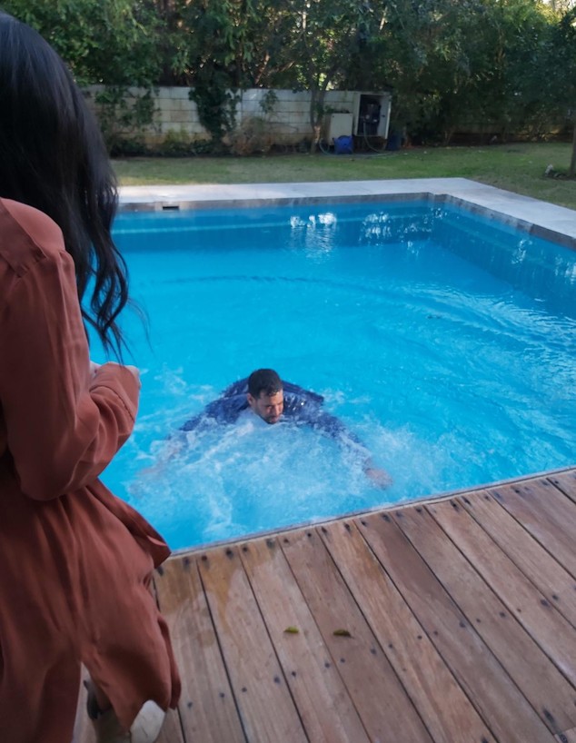 אתמול בצילומי הקליפ לשיר חדש של זמרת חדשה בשם אופל רביבו, בן נתן נדרש להתחבק עם הזמרת על שפת הבריכה בסצנה מרגשת, אך כנראה שהוא עמד קרוב מידי לשפת הבריכה ומעד הישר לתוך המים עם כל הבגדים מעליו