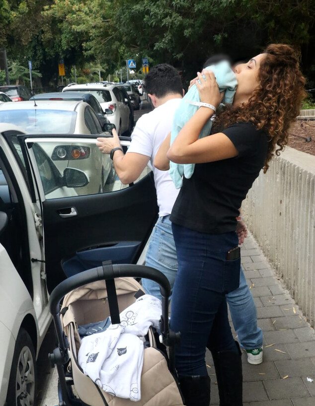 חמישה ימים אחרי שהביאה לעולם את בנה הבכור, כתבת חדשות 12 מעיין פרתי השתחררה מבית החולים איכילוב לביתה יחד עם בן זוגה מיכאל - ועם התוספת החדש למשפחה