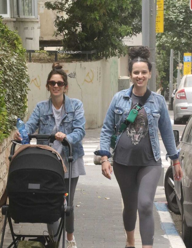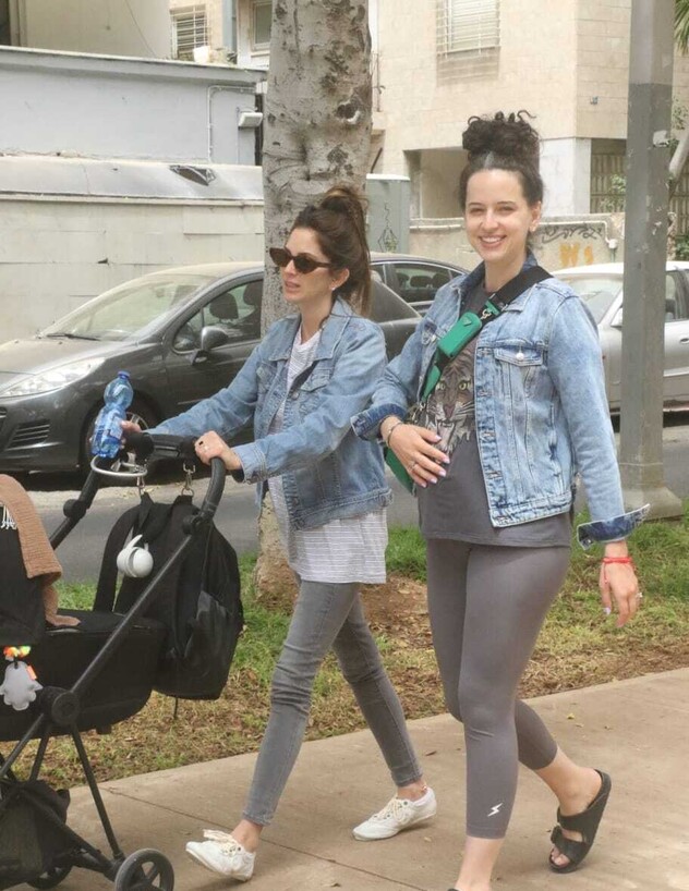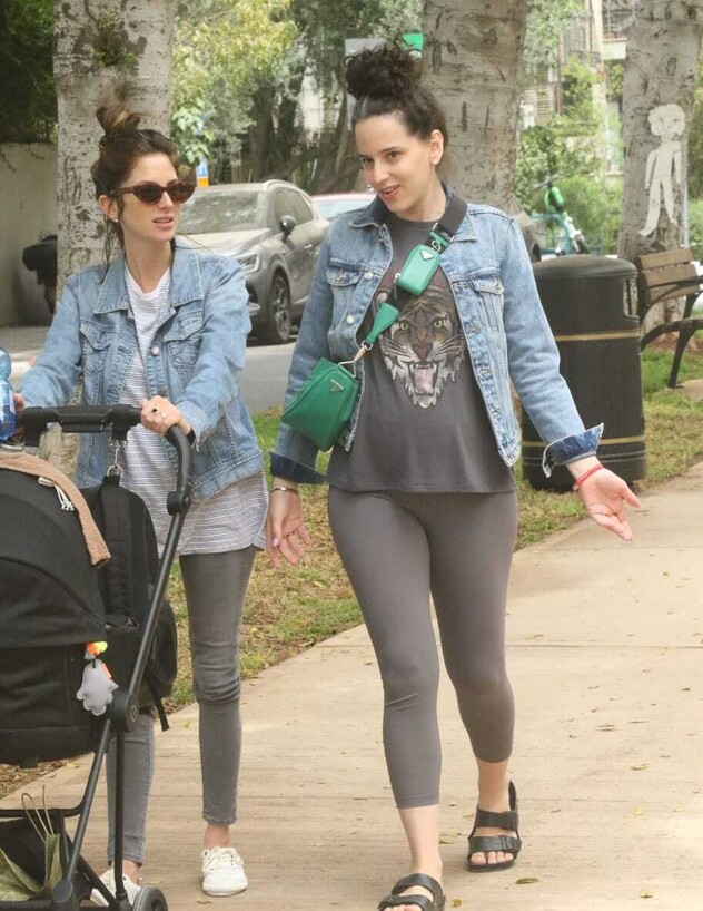 במהלכו של יום שמשי במיוחד, תפסנו את קורין גדעון ההריונית מטיילת עם חברה - באאוטפיטים תואמים למדי. כל אחת מהן לבשה ג'קט ג'ינס ומכנסיים צמודים בצבע אפור, והעיניים שלנו מעולם לא היו שמחות יותר. אפילו השיער היה תואם