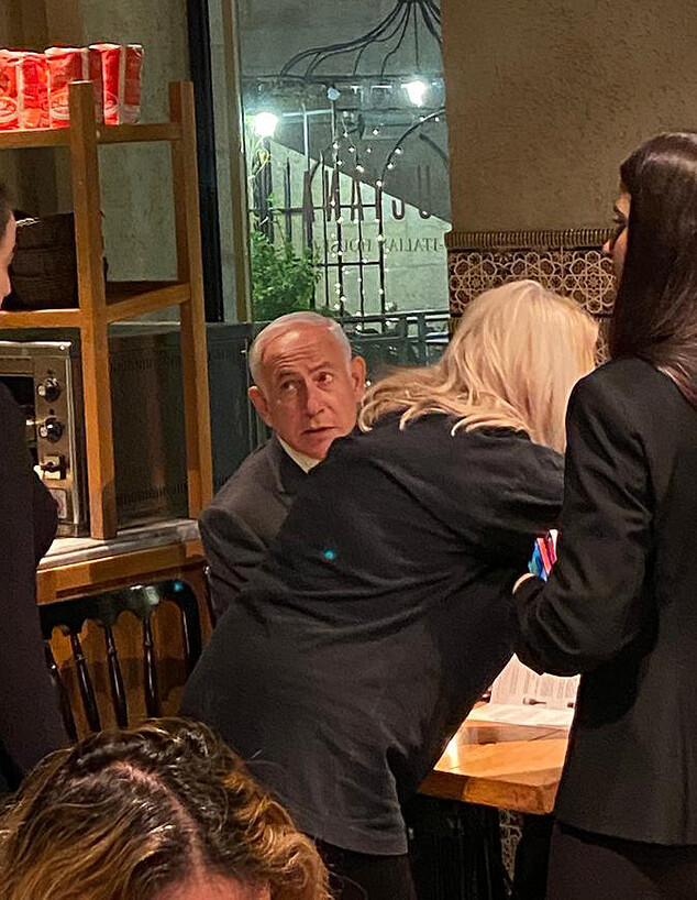 רגע אחרי שסיימו את הבילוי המשותף, ביבי עצר ביציאה מהמסעדה לבקשת כמה סועדים שלא יכלו להתאפק - וביקשו סלפי עם נבחר הציבור שלהם