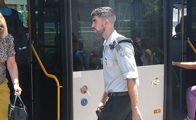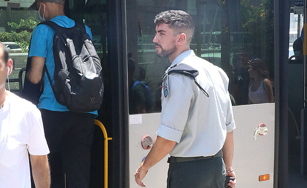 הקצין הלוהט שוטט בסביבת הקריה עם מדי הקבע שלו, כשהוא מתעסק בטלפון בפעילות ראשונה במעלה