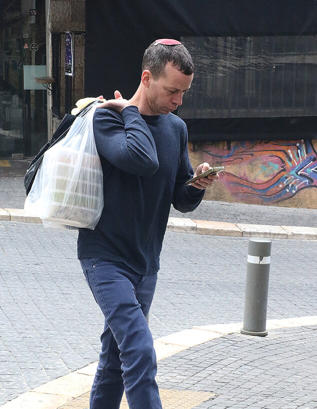 הצלם החד שלנו תפס את עמית קונה אוכל מוכן הביתה, פיצוחים ולחמים
