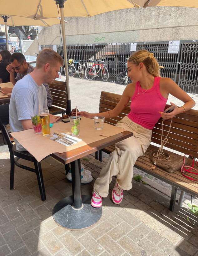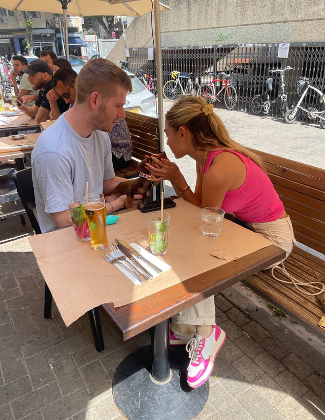 השניים ישבו על בירה של צהריים ונראה שמה שבעיקר משך את תשומת הלב של מאיה הוא הכלב החדש והמתוק שלה