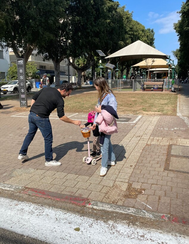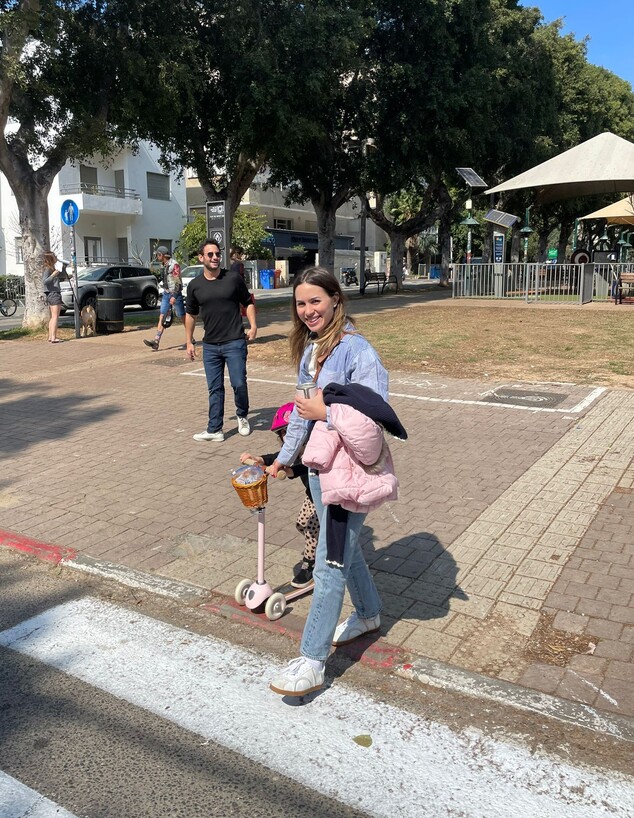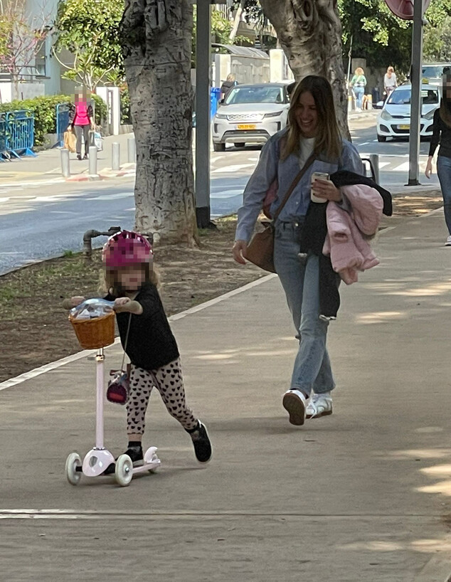 אילן הראתה יכולות מרשימות על קורקינט בזמן שאמא אדוה שמרה עליה