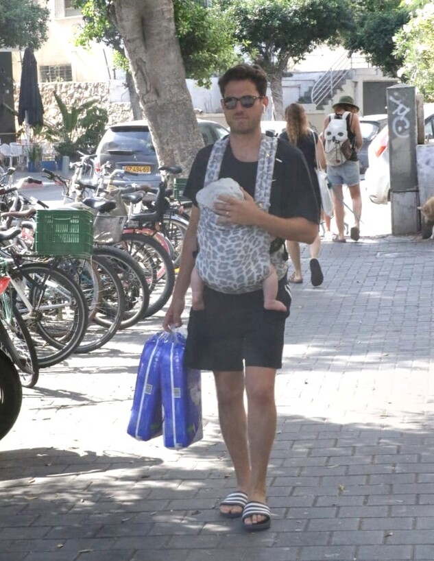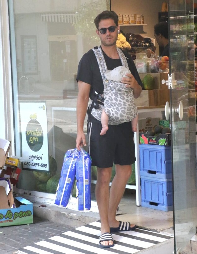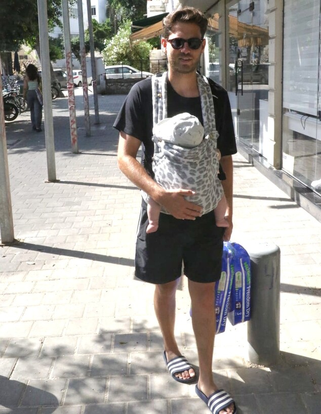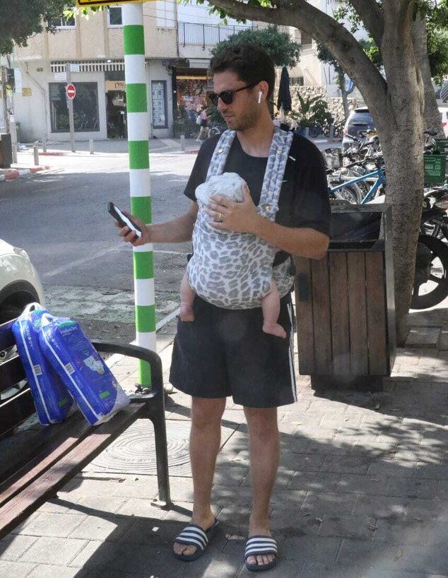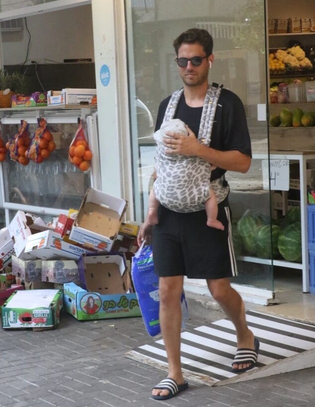 האבא הטרי נראה לוקח את בנו על המנשא, ומה נגיד, זה פשוט מתוק