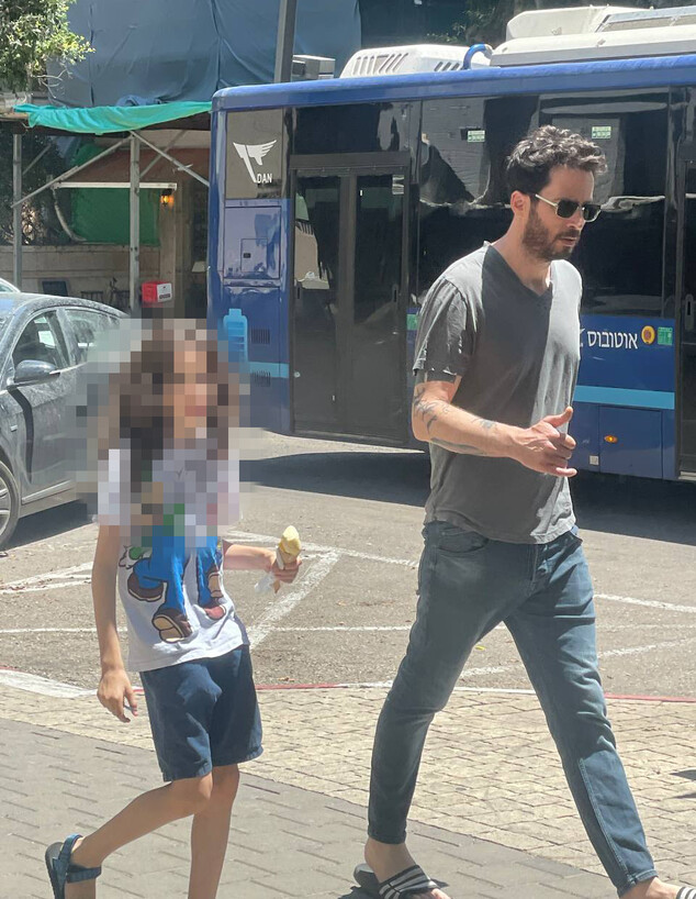 נראה שהשניים ממהרים למקום כלשהו, אבל אבא עידו לא שכח לפנק את הילד בגלידה שתצנן קצת את היום החם