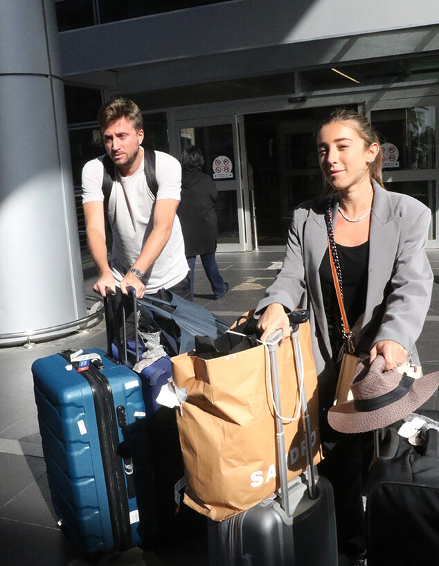 עדשת הפפראצי שלנו תפסה את המאורסים הטריים בנתב"ג ונראה שהם התקשו להסתיר את החיוך. אנחנו כבר מתים לדעת - מתי החתונה תצא לפועל?