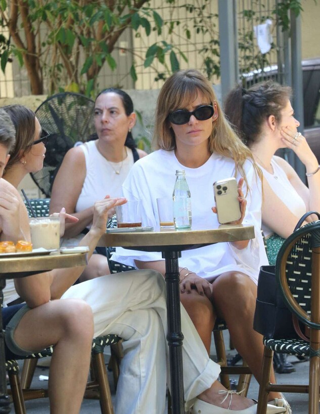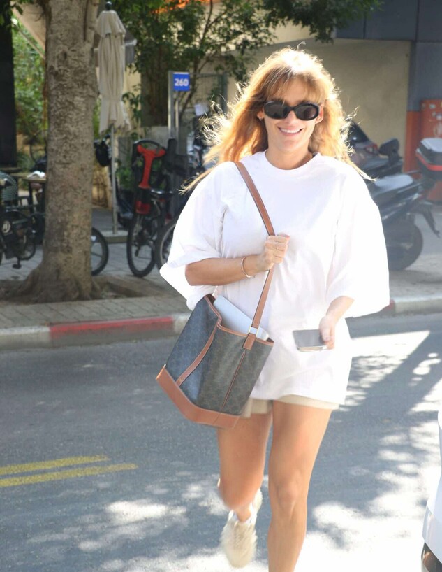 בחולצה לבנה רחבה, מכנסיים קצרים, משקפי שמש ונעלי ספורט - פרידר נראית פשוט במיטבה