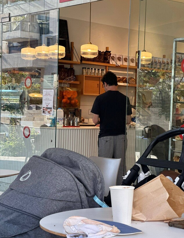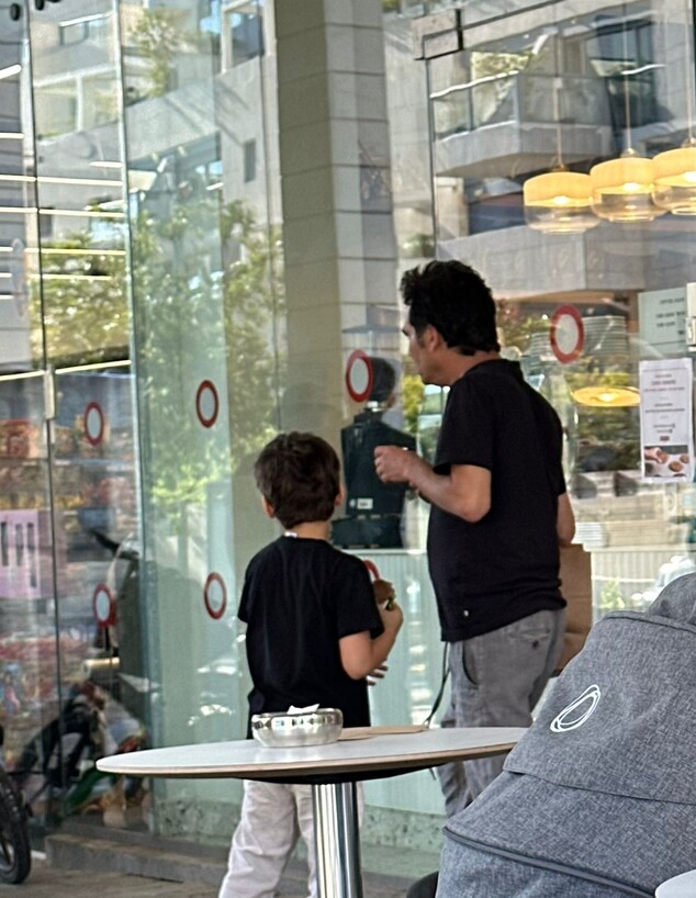הוא ממש לא היה במאפייה לבד, והצטרף אליו בנו הקטן - אליוט. אין כמו בילוי של אב ובן ביום אביבי שכזה