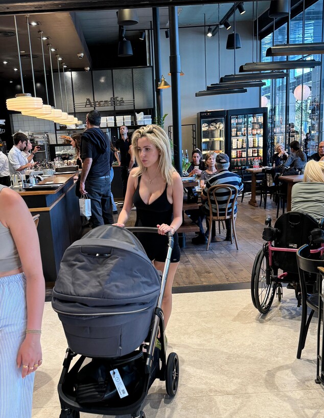 ארז נצפתה בקניון רמת אביב שבצפון תל אביב, כשהיא מסתובבת יחד עם ג'ון הקטן שבעגלה