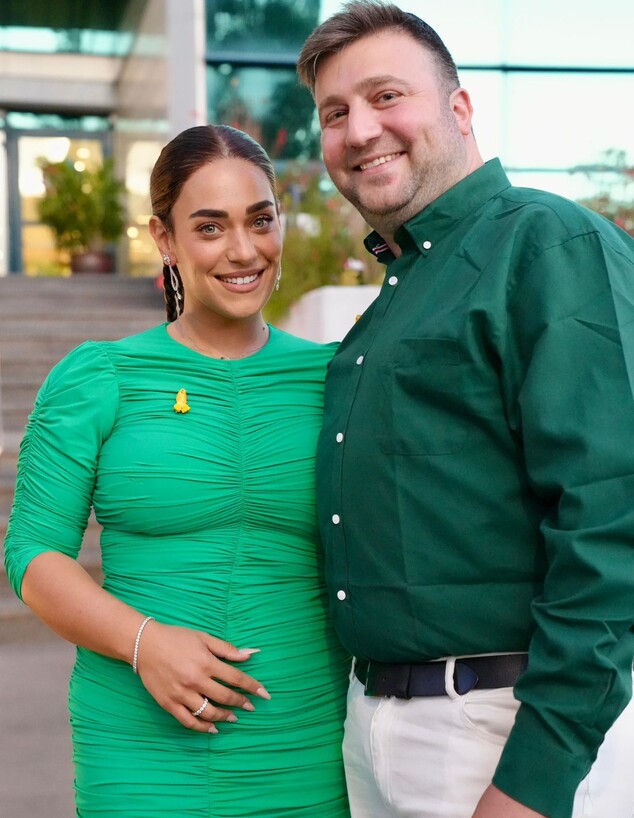 איציק ואסתי סוקולובסקי השאירו את שלושת הילדים בבית והגיעו גם הם לצפות בפרק הבכורה. אם עוד לא הבחנתם, כל זוג התלבש בצבעים שאפיינו אותו גם בפרק הבכורה ואין ספק שירוק משתלב לאסתי עם העיניים. בול