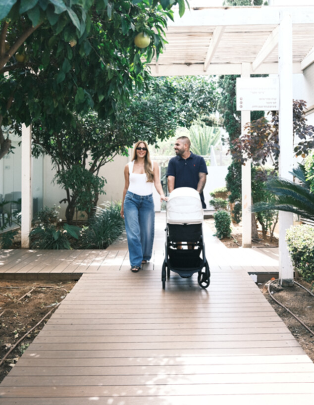 ארבעה ימים אחרי שהביאו לעולם את בנם השני, הזמרת נסרין קדרי ובעלה רום שמיר יוצאים מבית החולים "המרכז הרפואי שמיר (אסף הרופא)" עם הבייבי הקטן היישר לביתם