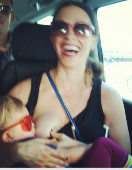אליסה מילאנו היא לוחמת ותיקה למען הזכות להניק בציבור, ובתמונה הזו היא מניקה את בתה, אליזבלה (זו לא שגיאת הקלדה)