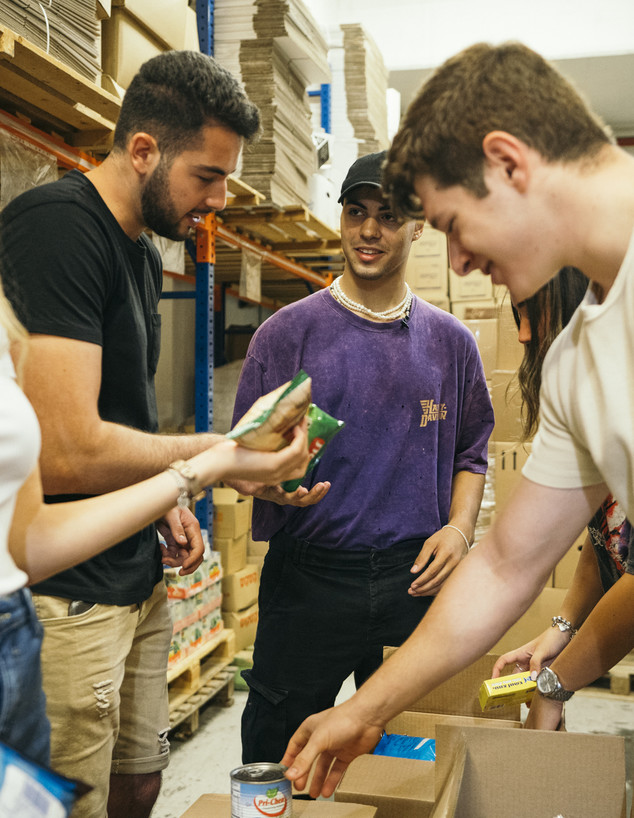 מרגי סייע באריזת מצרכים למשפחות נזקקות והעמיס הכל למכוניות ששולחות את המארזים החשובים לדרכם