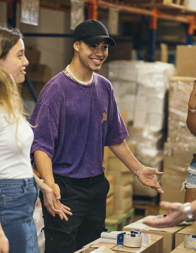 עדן, יחד עם עוד מתנדבים מפרויקט הקיץ Coca-Cola WOW 2021, עזרו במקום למיין ולסדר את הבגדים שמגיעים לשם כתרומה