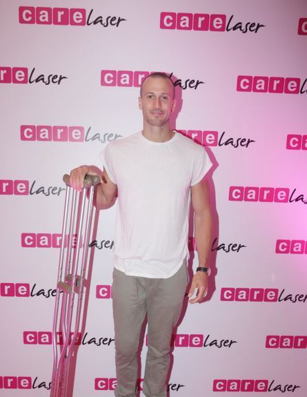 עשה מאמץ והגיע למרות הניתוח בברך. מייקל לואיס מתאושש עם הקביים