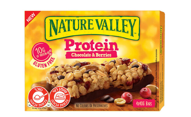 Nature Valley משיקים במהדורה מוגבלת חטיף פרוטאין בטעם שוקולד וחמוציות אשר מכיל 26% חלבון. החטיפים אינם מכילים גלוטן וללא כל תוספת של חומרים משמרים וצבעי מאכל. מחיר: 24.90 שקלים (למארז המכיל 4 חטיפים ארוזים, 40 גרם לחטיף). להשיג ברשתות המזון והשיווק.