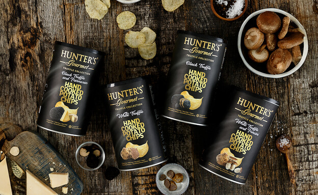 חטיפי הצ'יפס של Hunter Foods מגיעים מאיחוד האמירויות, מיוצרים בעבודת יד בטעמים: כמהין שחור, כמהין שחור ופרמז'ן, כמהין לבן ופורצ'יני, קוויאר שחור, כבד אווז, ארבע גבינות, פסטו ופרמז'ן ועוד. ללא מונוסודיום גלוטמט, שומן טראנס או כולסטרול. טווח מחירים: 10-24.90 שקלים. להשיג ברשתות השיווק.