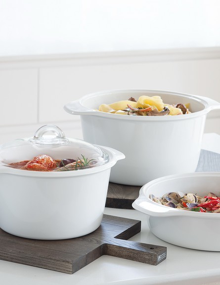 50% הנחה על הכלים הלבנים האלגנטיים בסדרת סירי זכוכית vitromax.