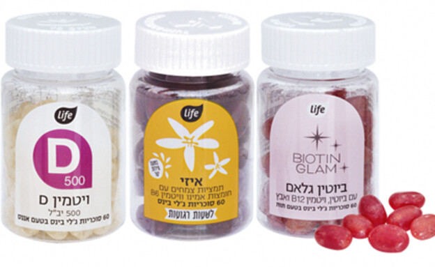 Life סופר־פארם משיק סדרת תוספי תזונה בצורת Jelly Beans סוכריות לעיסה בטעמים שונים לנוחות ולטעם מעולה. הסדרה כוללת Biotin Glam ויטמין D ו־ EAZY עם מליסה ואשווגנדה, כולן טבעוניות ומועשרות בוויטמינים חיוניים. טווח מחירים: 39.90–54.90 שקלים. להשיג סופר־פארם ובאתר.
