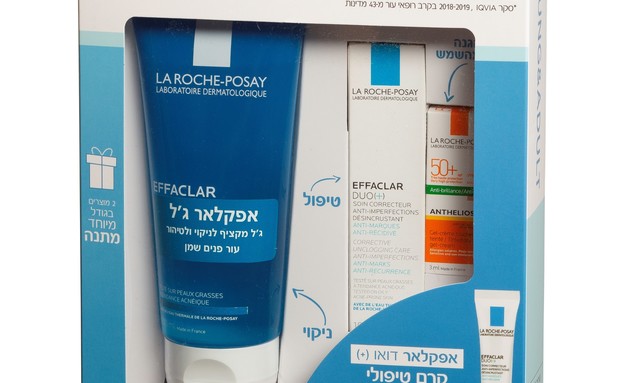 מארז טיפוח לשגרת טיפוח יומיומית מסדרת אפקלאר לניקוי וטיפול לעור שמן הנוטה לפצעונים הכולל ג'ל ניקוי, קרם פנים, וקרם הגנה מהשמש ב- 79 שקלים. להשיג ברשתות הפארם, בתי מרקחת ובקנייה און-ליין.