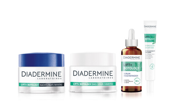 DIADERMINE משיקה סדרת אנטי אייג'ינג LIFT+ BOTOLOGY, לצמצום מראה הקמטים. בעלת פורמולה הכוללת 3 אלמנטים הנלחמים בהזדקנות העור מכילה 92% רכיבים ממקור טבעי. הסדרה כוללת 4 מוצרים: סרום, קרם יום, קרם לילה וקרם עיניים. מחירים: 59.90 שקלים. להשיג בסופר פארם.