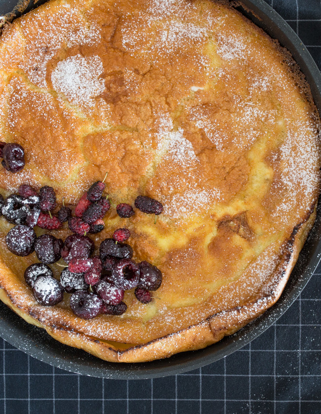 פנקייק משפחתי אפוי. כלים לשטוף: קערה, מטרפה, מחבת