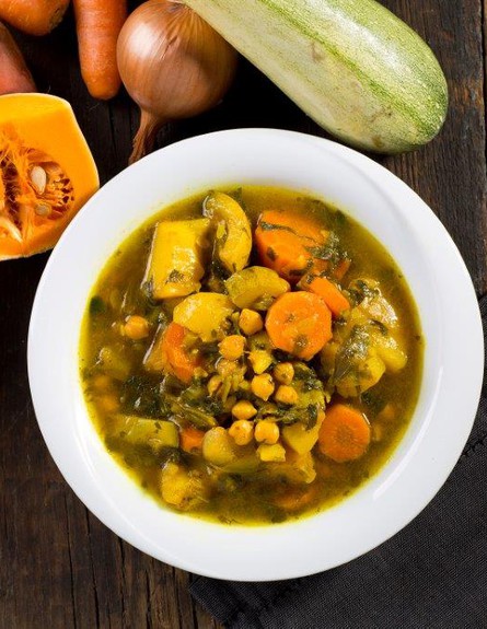 יש פה הכל: ירקות שורש, עגבניות קצוצות, עשבי תיבול. טעים, מזין, מחמם ואם לא מצליחים לסיים את הסיר - מוסיפים אורז או בורגול והופכים את המרק לפילאף. למתכון הכי טוב למרק ירקות