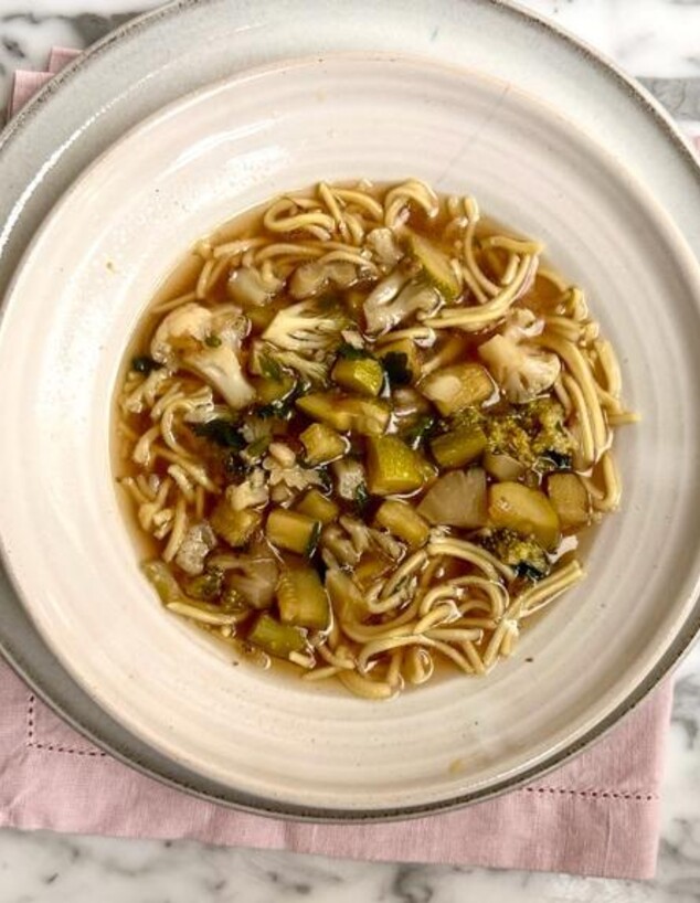 אפרופו קוסקוס, כאן המרק מגיע עם אטריות בילט אין, וכמה שזה כיף. למתכון: מרק ירקות עם אטריות